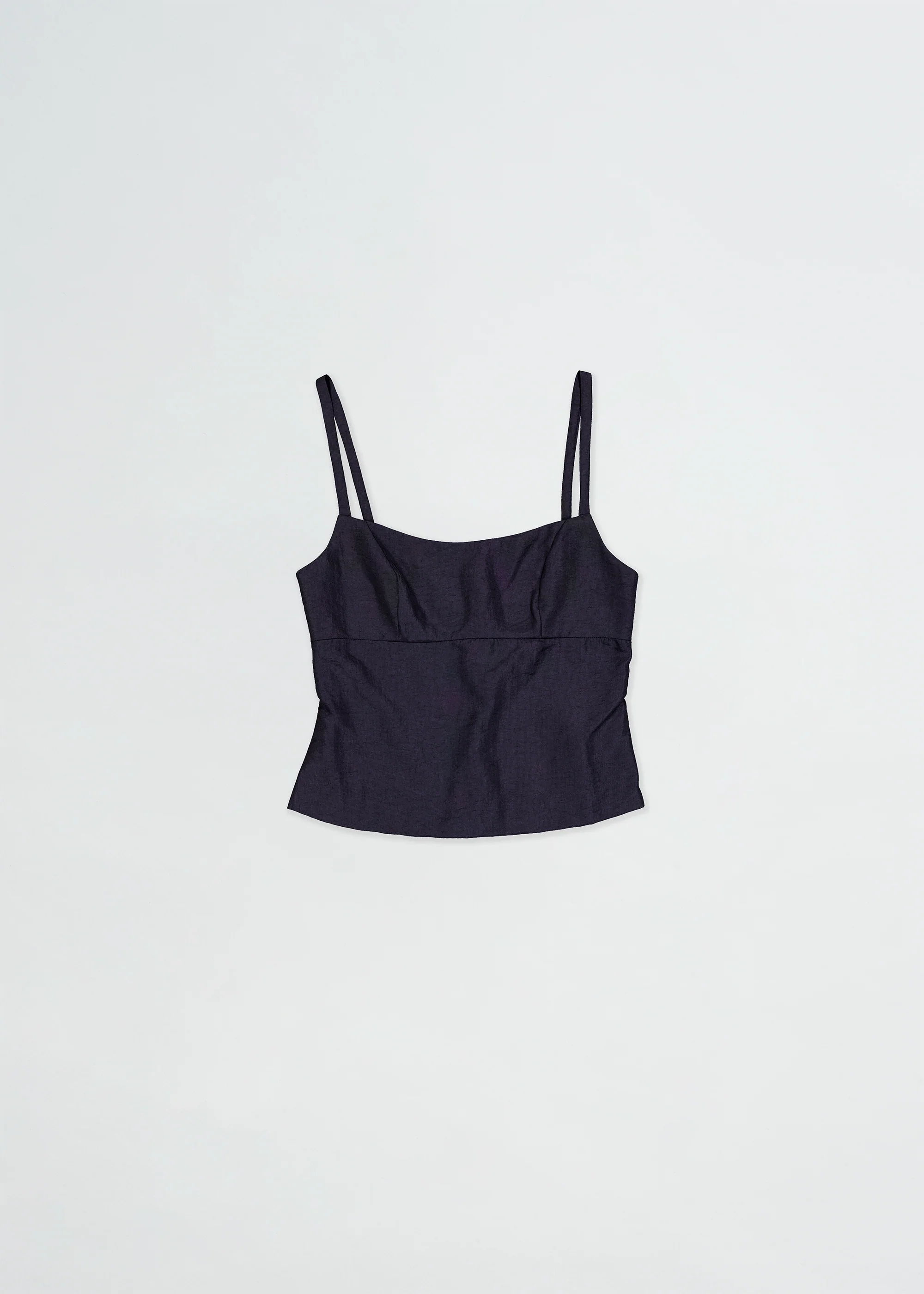 The Refract Singlet is an essential structured camisole, featuring thin straps and a slightly flared cropped hem. Crafted in Japanese recycled nylon, a technical fabric that plays with the light around the garment, adding dimension and texture.